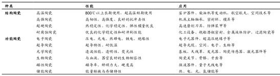 先進陶瓷應用性能分類