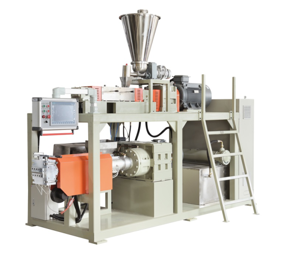 雙螺桿造粒機/雙螺桿造粒線配混擠出機是大功率、高扭矩系列擠出機,是應用德國技術生產于中國的高質量、高性能產品。該系列產品所有關鍵部件均采用進口知名品牌,安裝調試過程經過專業人員嚴格監控,使設備具有運行穩定、 高產量、能耗低等特點。